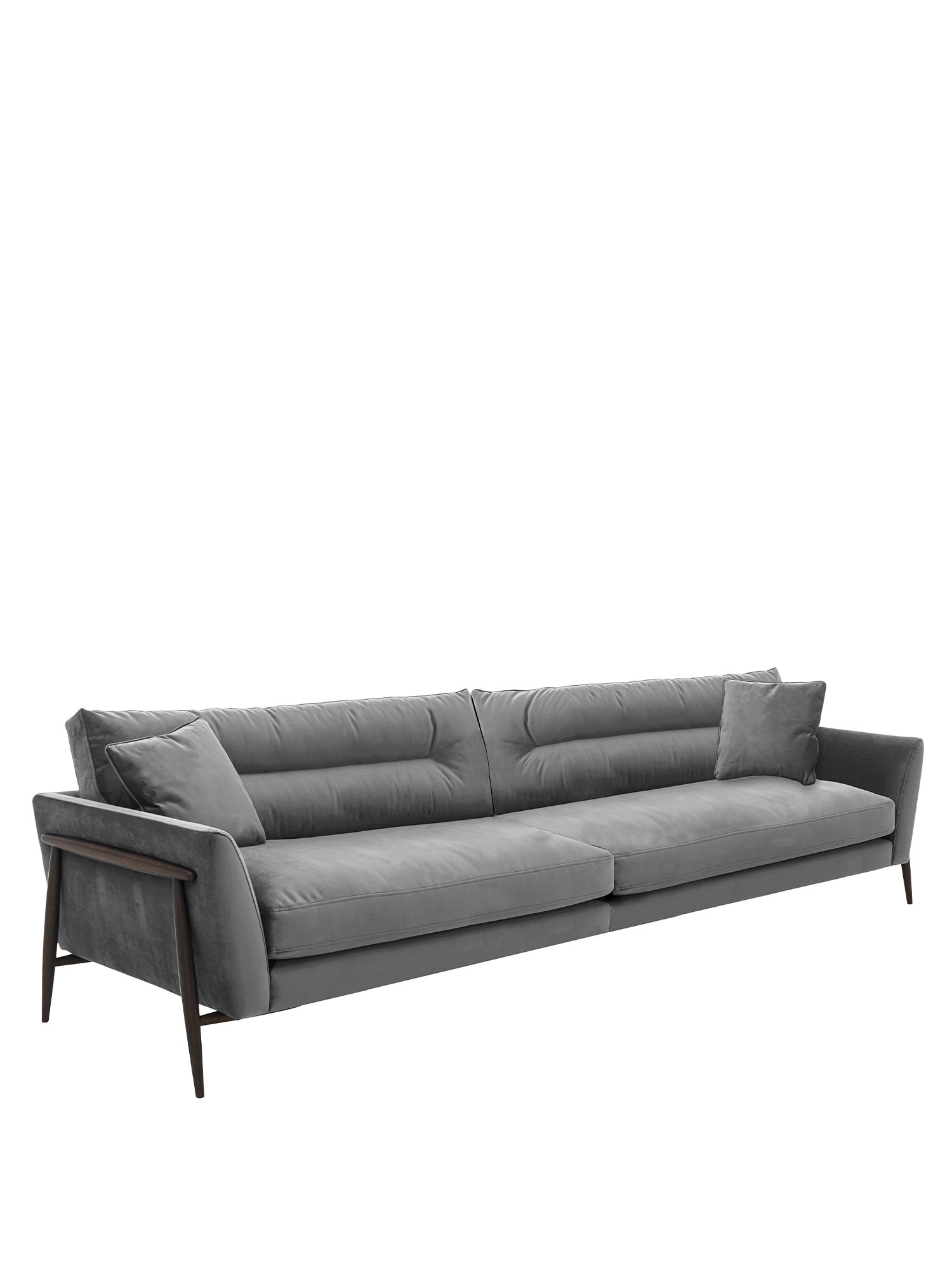 This Bellaria Grand sofa is a comfortable and beautifully designed sofa which is attractive from all angles. This practical grand sofa has reversible back and arm cushions filled with plump fibre and finished with a central seam for comfort and to add an element of style, it also has an attractive stitching across the arms. The Bellaria show wood legs and end frame is a stunning oak turned frame which is available in a light or dark finish to complete any look you require. The fabrics are from a selection of woven textured weaves or plush velvets. This collection is exclusive to Furniture Village stores.